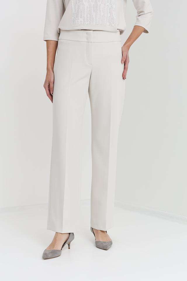 Брюки имеют прямой крой и стандартную посадку по талии. Ткань, состоящая из 88% полиэстера и 12% эластана, обеспечивает комфорт в носке, устойчивость к сминанию и хорошую посадку по фигуре.