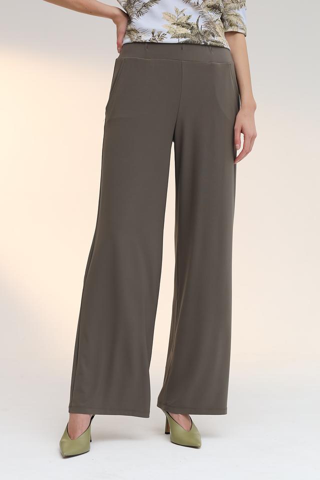 Эти брюки от Bianca станут незаменимой частью вашего повседневного образа. Классический крой палаццо обеспечивает свободу движений и комфорт в течение всего дня. Брюки выполнены в спокойном хаки цвете, который легко сочетается с различными топами и обувью.