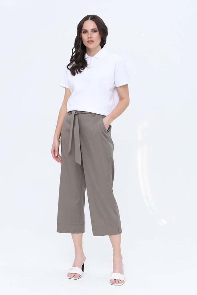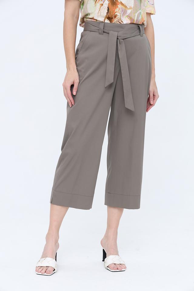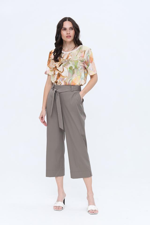 Особенностью данной модели является пояс с завязками, который позволяет регулировать посадку и подчеркивать талию. Укороченная длина кюлотов делает их идеальным выбором для теплого времени года, а также позволяет сочетать их с различной обувью — от сандалий и балеток до кед и ботинок.