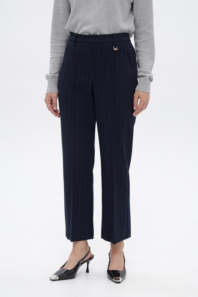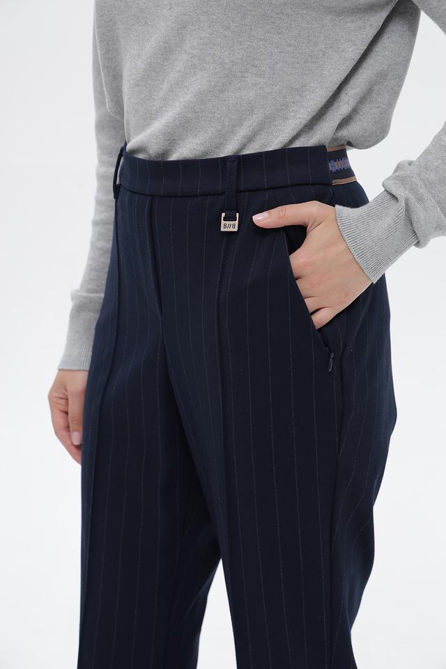 Классические брюки Bianca синего цвета в тонкую полоску. Модель выполнена из вискозы с добавлением полиамида и полиэстера, что обеспечивает комфорт и износостойкость. Идеальный выбор для создания элегантного образа. Состав: вискоза 60%, полиамид 26%, полиэстер 10%, эластан 4%