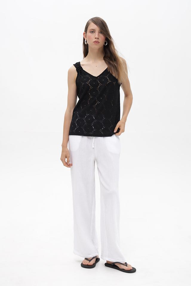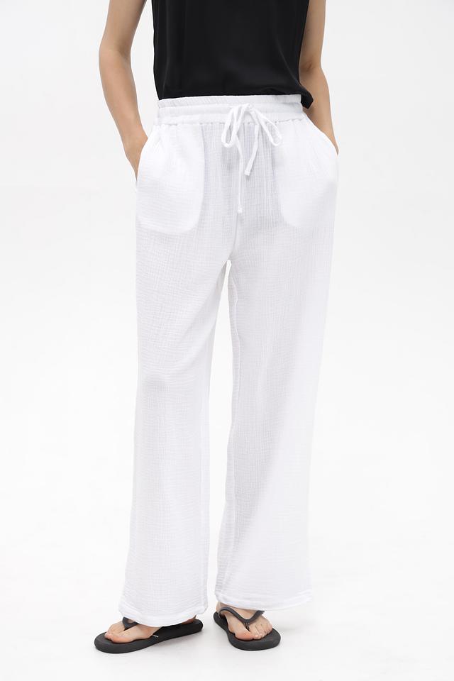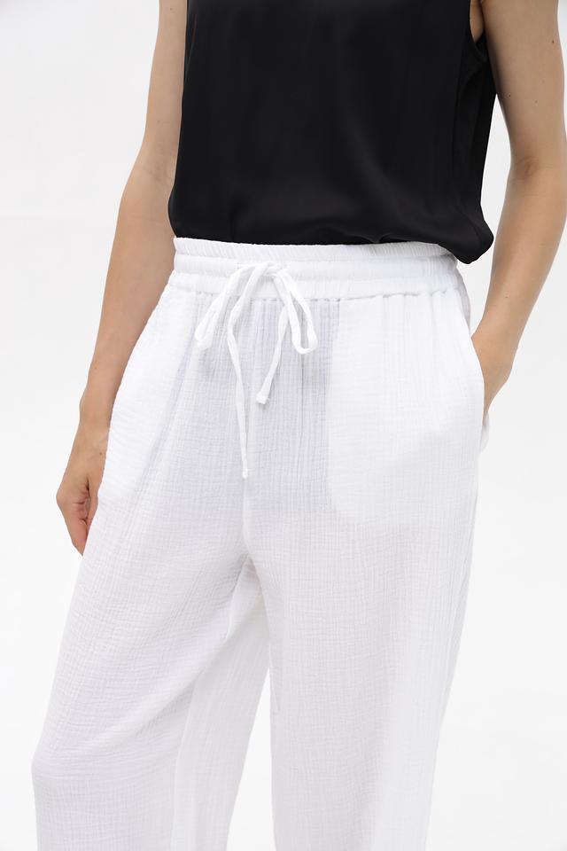 Белые брюки от Broadway — это комфорт и стиль в одном изделии. Модель выполнена из 100% хлопка, имеет широкую посадку и удобный пояс на завязках. Состав: хлопок 100%