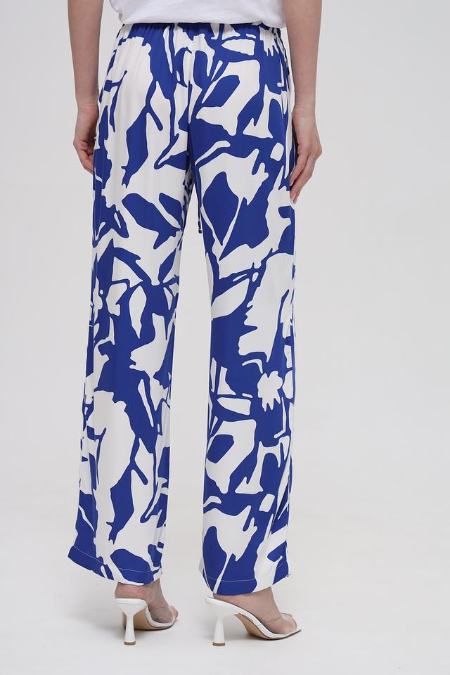 Брюки отличаются свободным кроем и завышенной талией, что делает их универсальными для различных типов фигуры. Эластичный пояс с кулиской обеспечивает идеальную посадку. Яркий цветочный принт добавляет образу женственности и оригинальности.