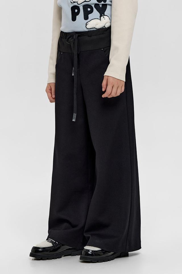 Чёрные брюки от Choupette — стильный выбор для юных модниц. Модель выполнена в широком крое с эластичным поясом и удобным шнурком для регулировки. Декоративная полоса с логотипом добавляет образу оригинальности. Состав: Состав_подкладка вискоза 100%, полиэстер 64%, хлопок 33%, полиуретан 3%