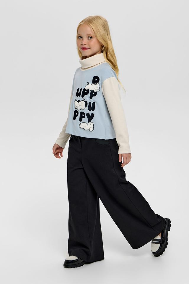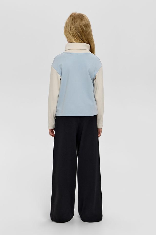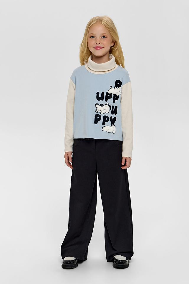 Брюки имеют широкий крой, обеспечивающий свободу движений, что особенно важно для активных детей. Эластичный пояс дополнен шнурком, позволяющим регулировать посадку по фигуре.