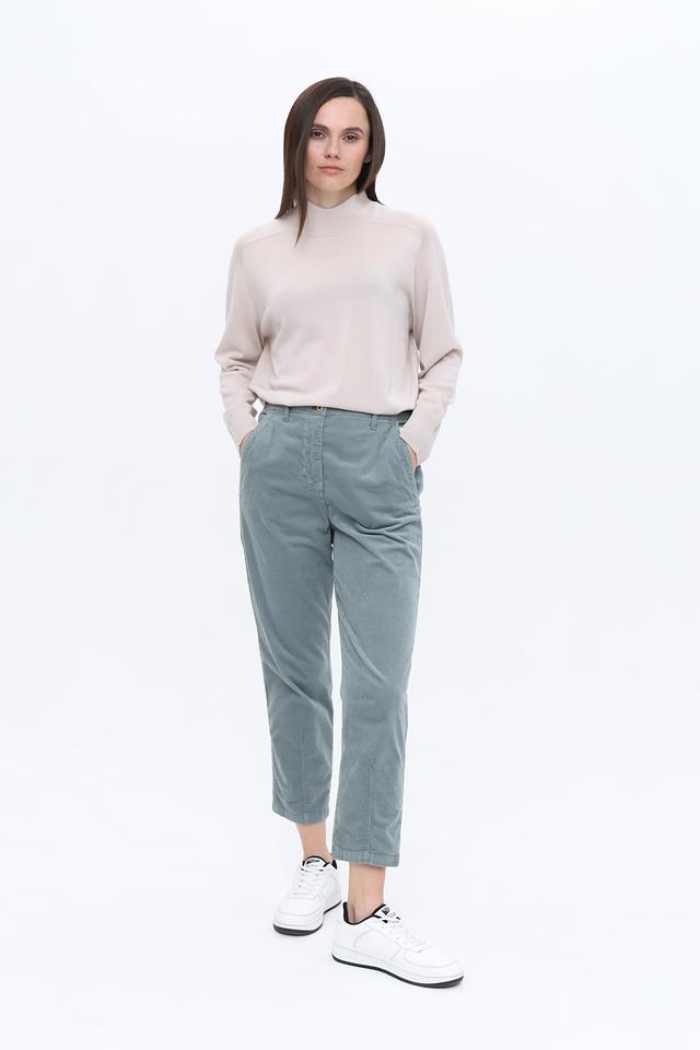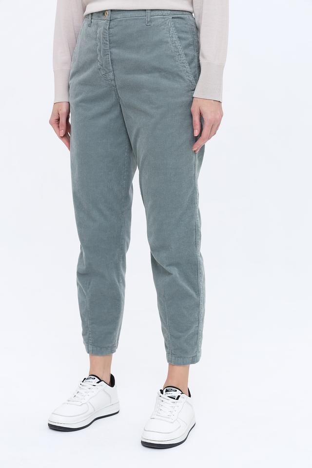 Женские брюки от Cinque цвета хаки из вельвета — удобная и стильная модель с завышенной талией и прямым кроем. Идеальный выбор для создания повседневных образов. Состав: хлопок 98%, эластан 2%
