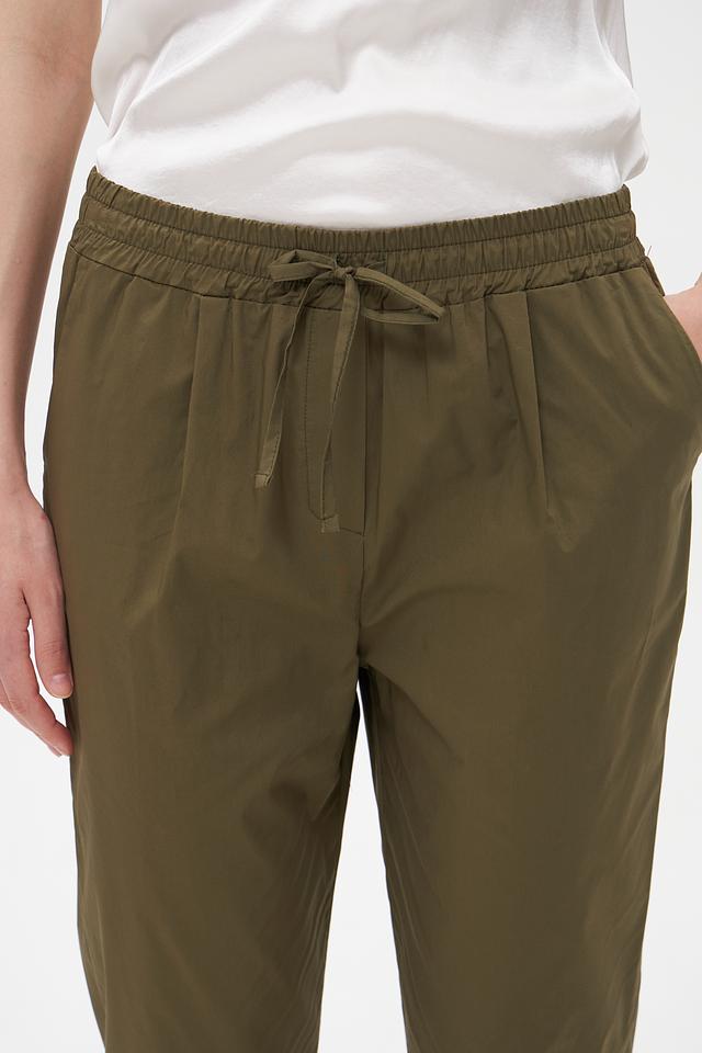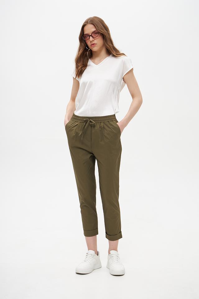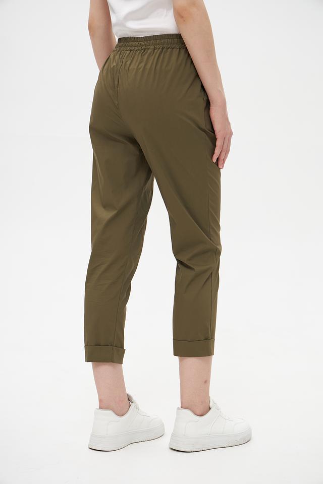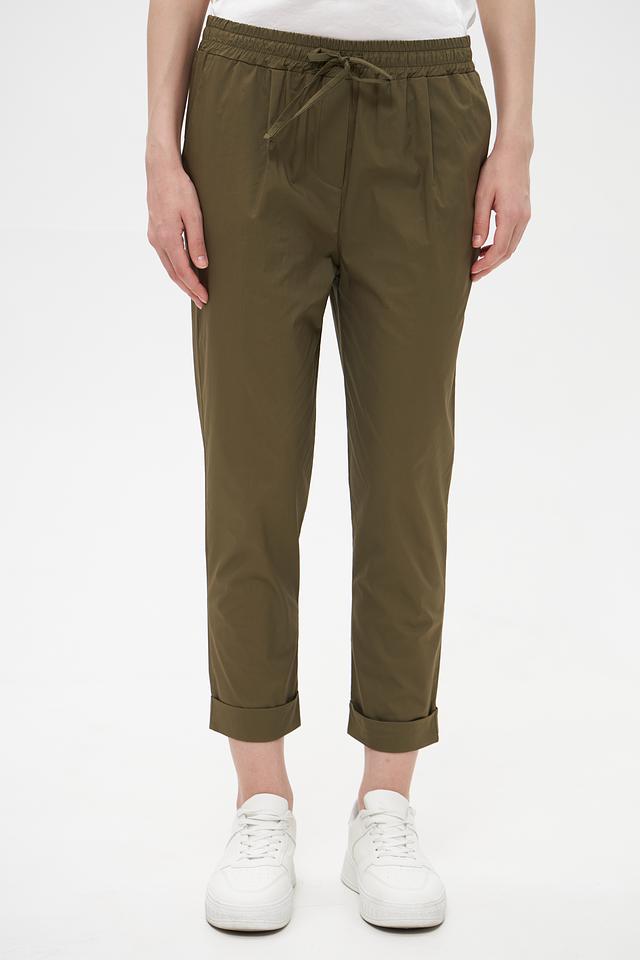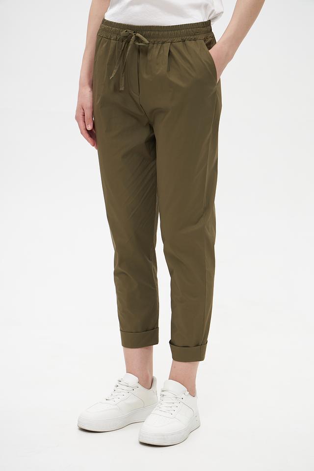 Женские брюки Croche оливкового цвета с удобной посадкой на резинке и завязках. Выполнены из 100% хлопка, обеспечивающего комфорт и воздухопроницаемость. Идеальный выбор для создания повседневных образов. Состав: хлопок 100%