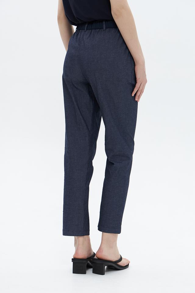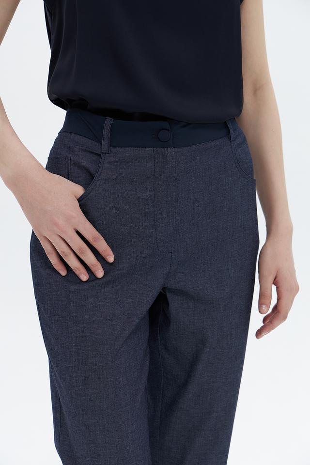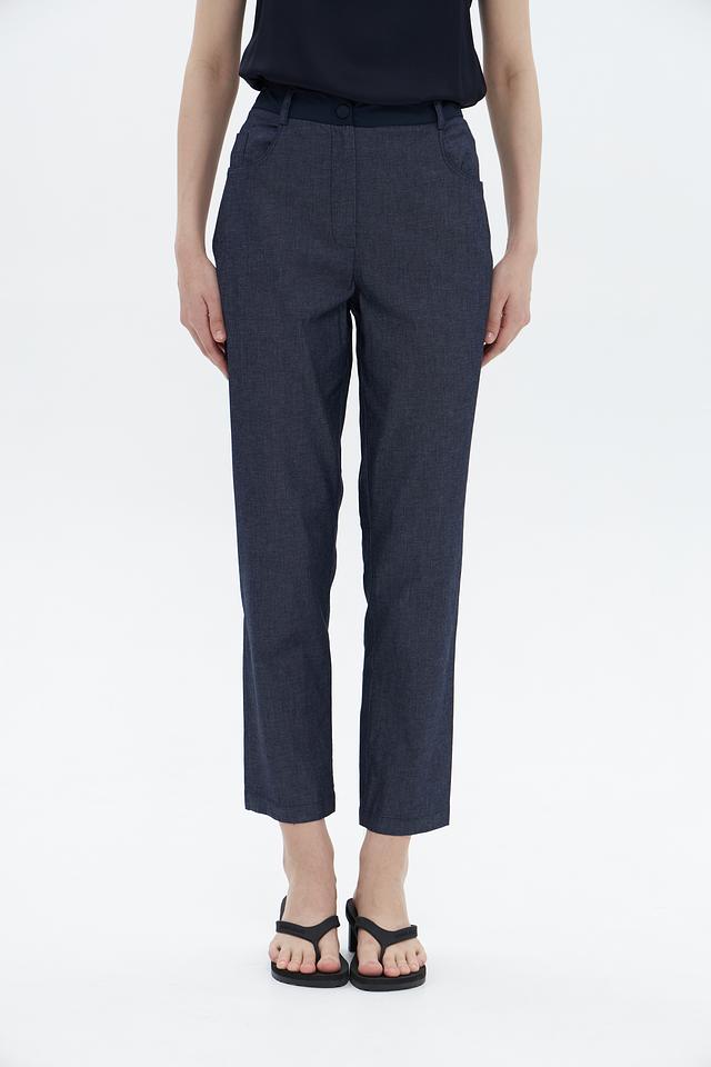 Брюки имеют прямой крой, который подчеркивает фигуру, не сковывая движения. Эластичный пояс обеспечивает удобную посадку. Классический дизайн делает эти брюки подходящими для работы, встреч и повседневной носки.