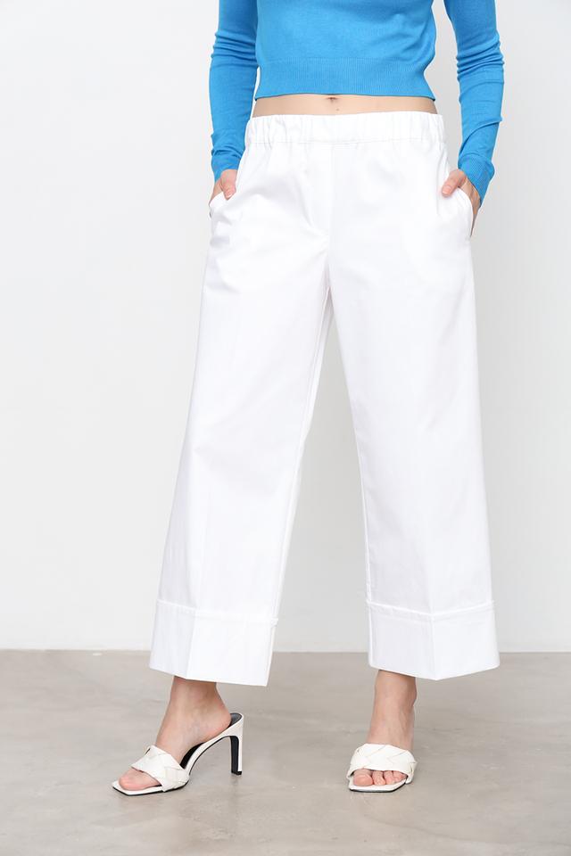 Белые брюки D. Exterior палаццо с завышенной талией и эластичным поясом станут отличным дополнением к вашему гардеробу. Модель выполнена из хлопка с добавлением эластана, что обеспечивает комфорт и свободу движений. Состав: хлопок 96%, Состав_подкладка ацетат 68%, Состав_подкладка эластан 32%, эластан 4%