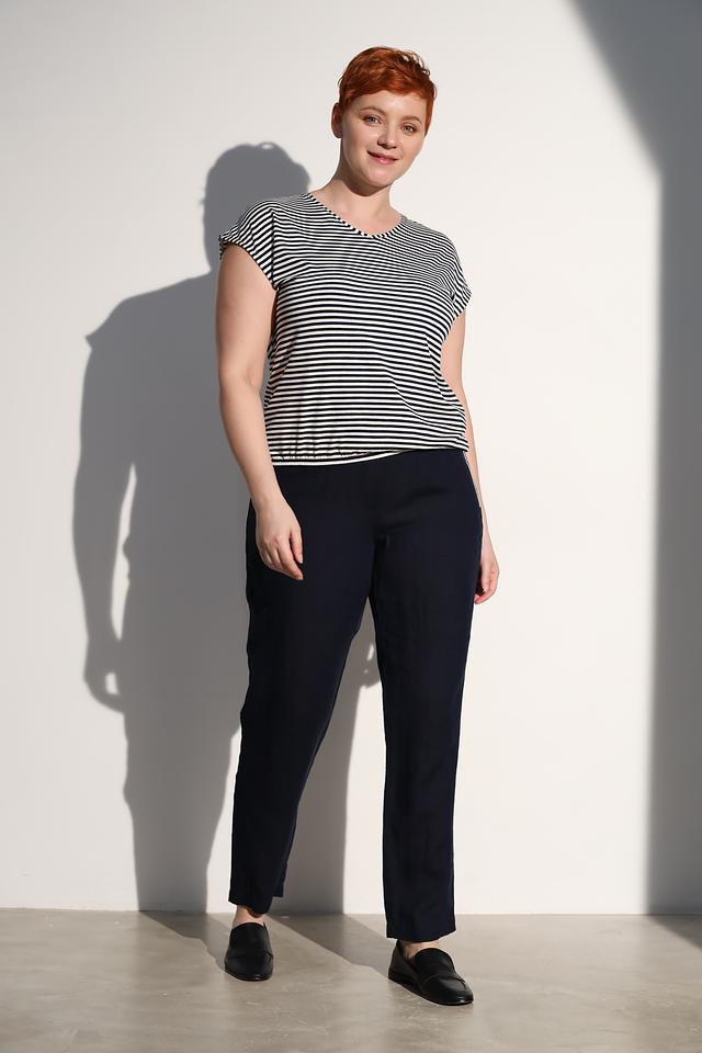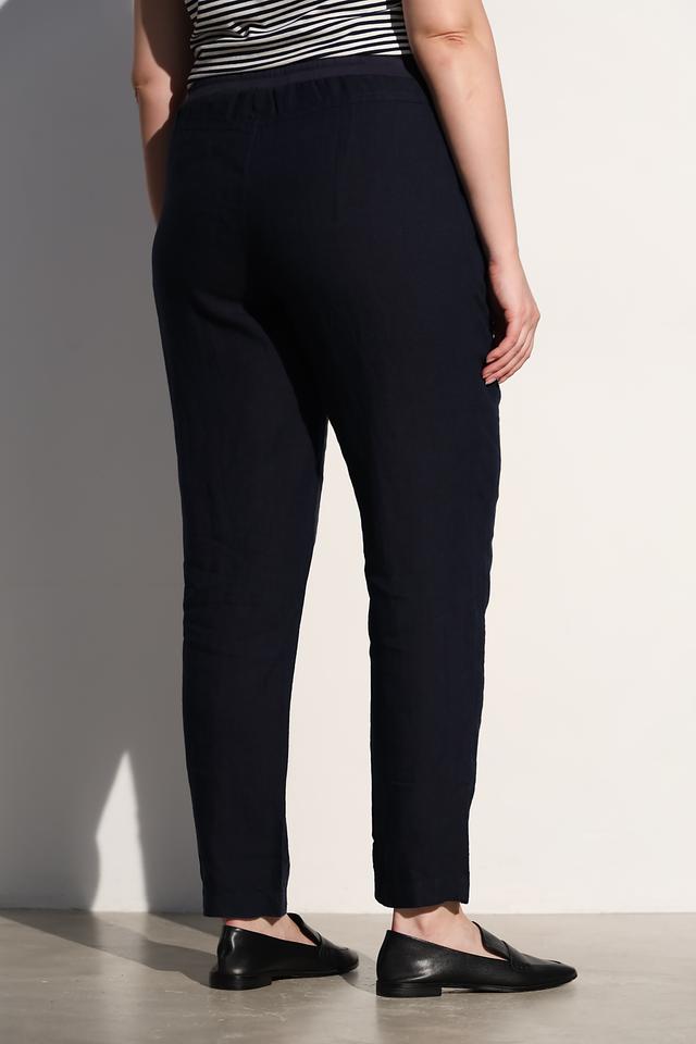 Темно-синий цвет брюк делает их универсальным элементом гардероба, который легко сочетается с различными топами и обувью. Состав брюк – 100% лен, что гарантирует их долговечность и износостойкость. Эти брюки станут отличным выбором для создания повседневных и элегантных образов.