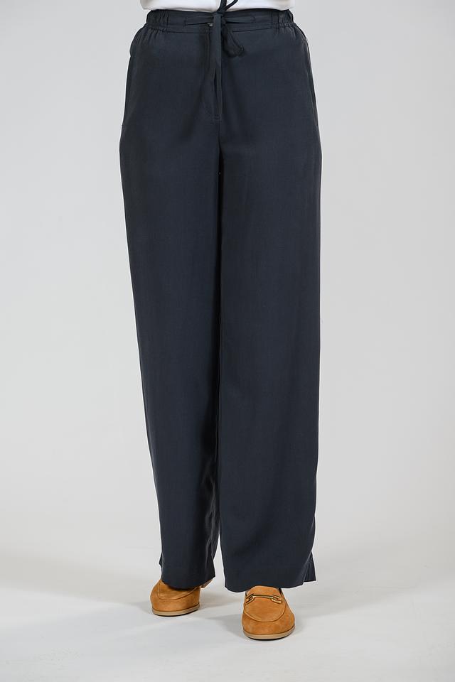 Тёмно-синие брюки Emka палаццо из 100% тенселя — это комфорт и стиль в одном изделии. Прямой крой и эластичный пояс с кулиской обеспечивают идеальную посадку и свободу движений. Состав: тенцель 100%
