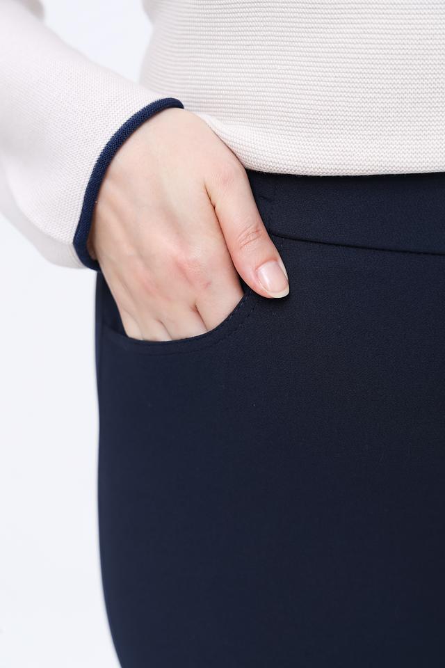 Изготовленные из полиэстера (87%) и эластана (13%), брюки приятны к телу, хорошо держат форму и практически не мнутся. Наличие задних накладных карманов добавляет функциональности и завершает образ.
