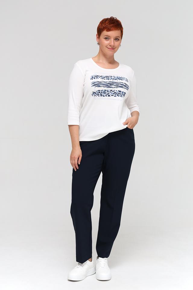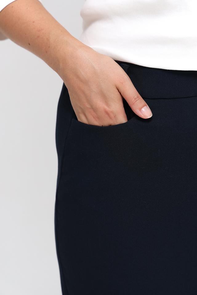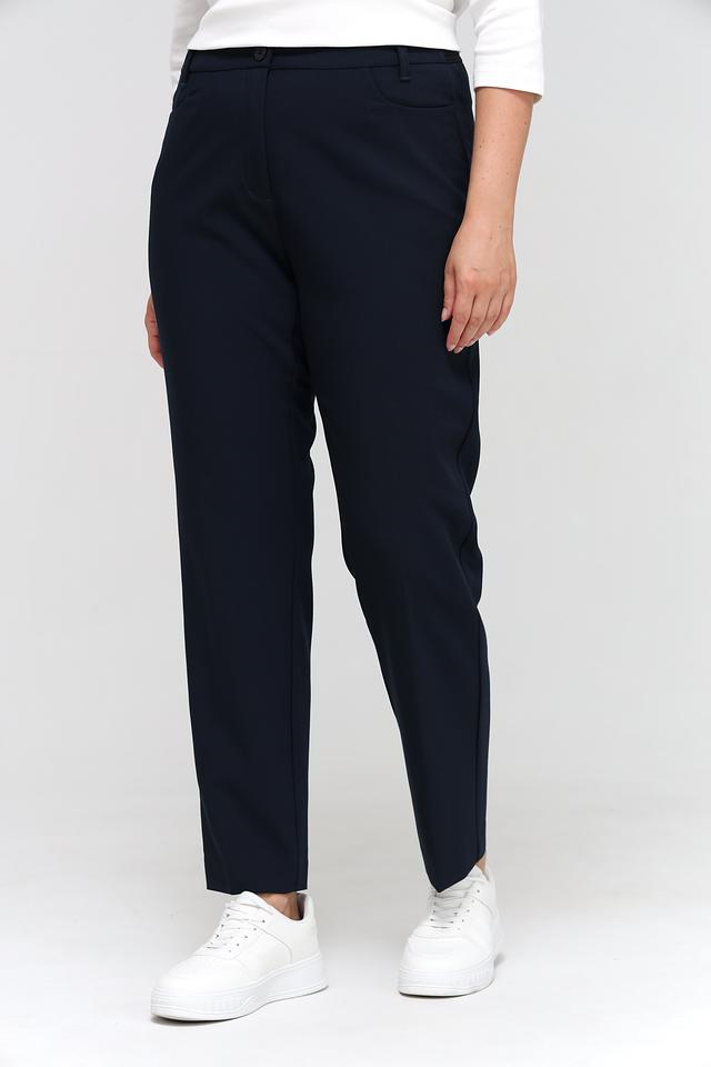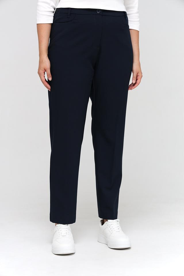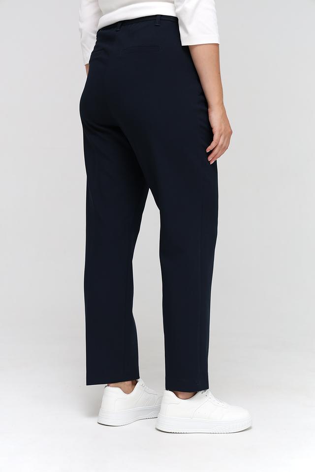 Брюки имеют прямой крой и стандартную посадку по фигуре. Они изготовлены из высококачественного полиэстера (72%), вискозы (22%) и эластана (6%), что обеспечивает приятные тактильные ощущения, хорошую износостойкость и небольшую эластичность.