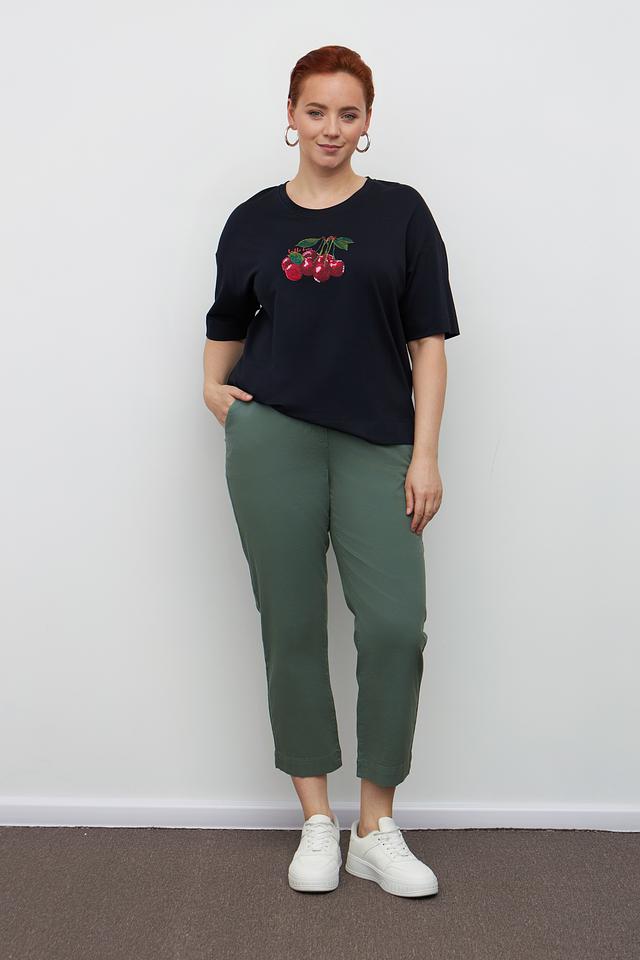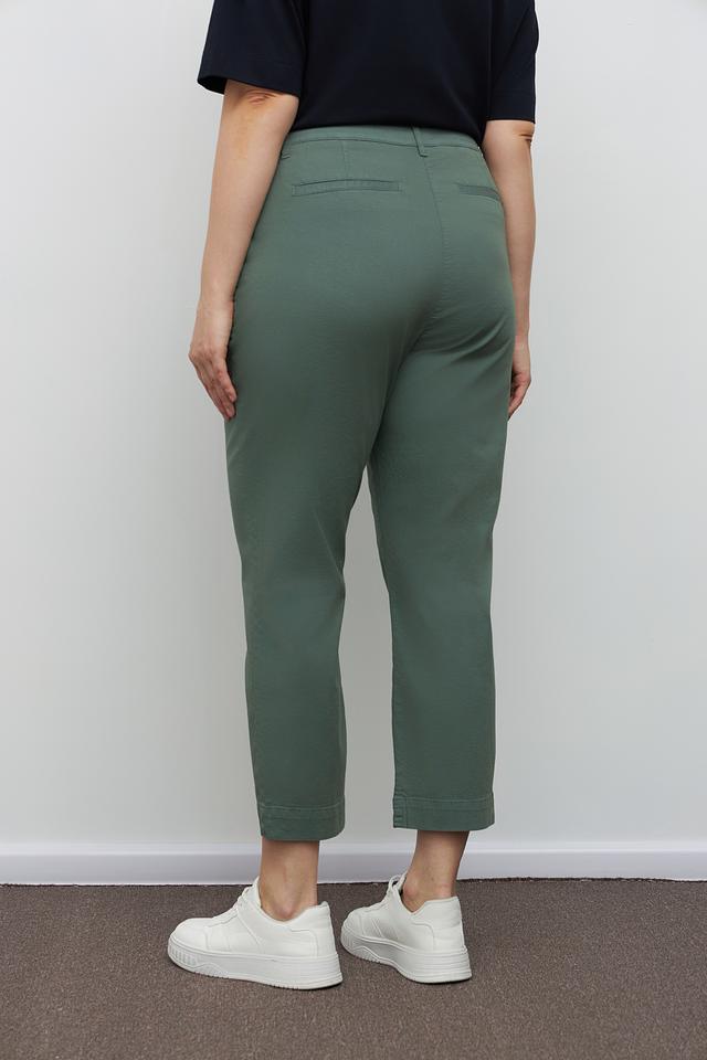 Брюки имеют прямой крой и зауженный низ, что придает им современный и стильный вид. Удобная посадка и эластичный материал (97% хлопок, 3% эластан) обеспечивают комфорт в течение всего дня.