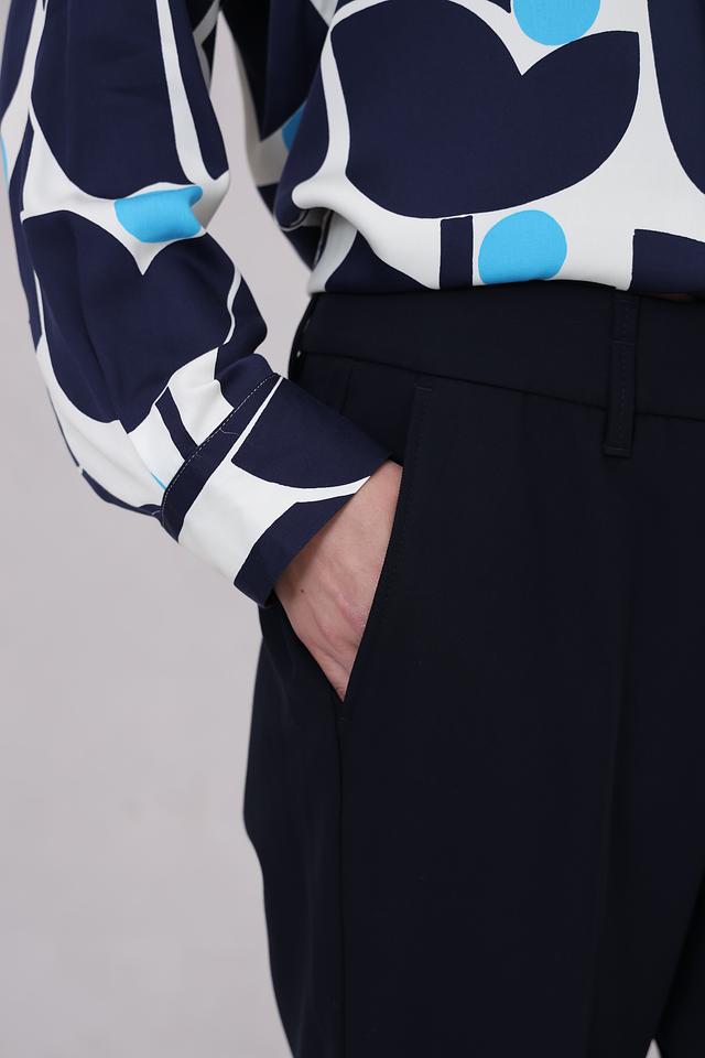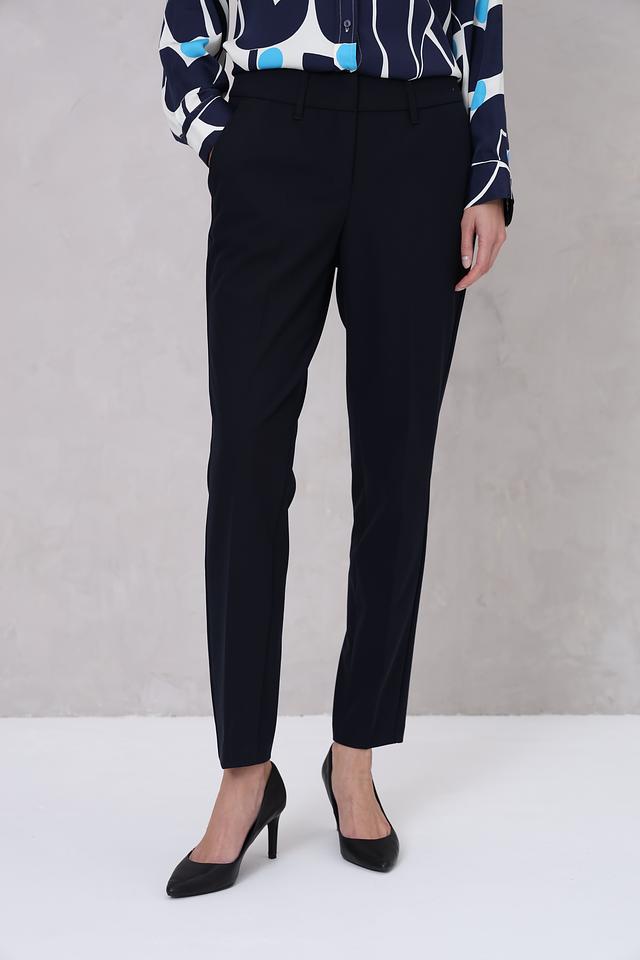 Цвет брюк – насыщенный темно-синий, который легко сочетается с различными элементами гардероба. Застежка на молнию и пуговицу, а также наличие боковых карманов делают модель практичной и функциональной. Брюки Gardeur – это стильный и удобный выбор для современной женщины.