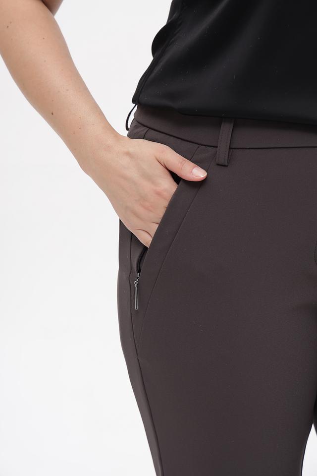 Укороченные брюки Gardeur серо-коричневого цвета, выполнены из полиамида с добавлением эластана. Модель имеет стандартную посадку, застежку на молнию и боковые карманы. Состав: полиамид 89%, эластан 11%