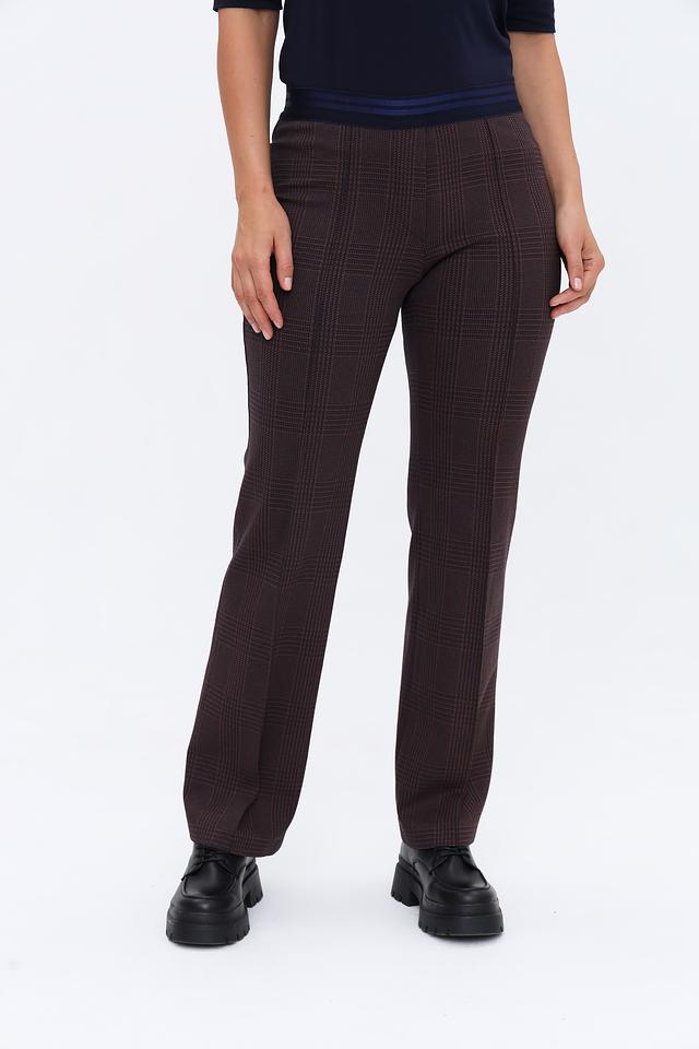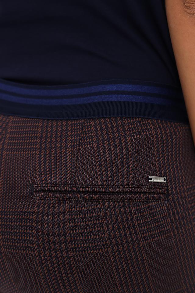 Представляем стильные брюки от бренда Gardeur. Эта модель выполнена в коричневом цвете и украшена классическим клетчатым принтом, который придает образу изысканность.