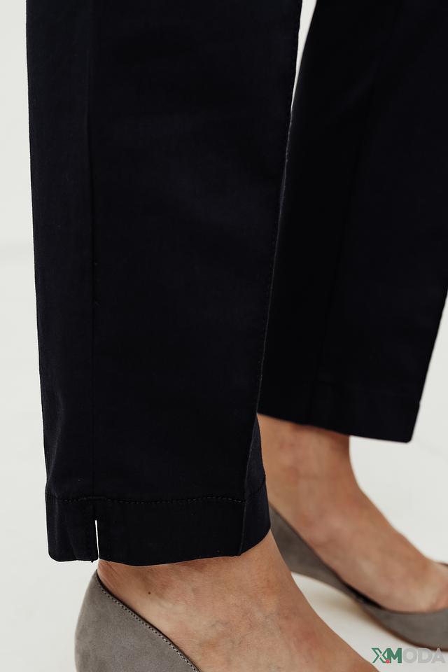 Брюки имеют прямой крой, плавно переходящий в зауженный низ, что визуально удлиняет ноги и создает элегантный силуэт. Модель выполнена из мягкой и приятной к телу ткани, состоящей из 96% органического хлопка и 4% эластана.