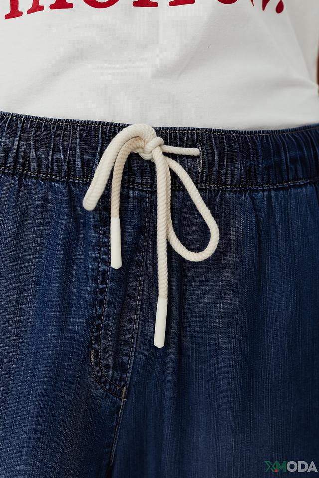 Синие джинсовые брюки Gerry Weber EDITION с зауженным низом и эластичным поясом. Модель выполнена из мягкой ткани с эффектом помятости и дополнена шнурком для регулировки посадки. Состав: лиоцел 66%, вискоза 18%, хлопок 16%