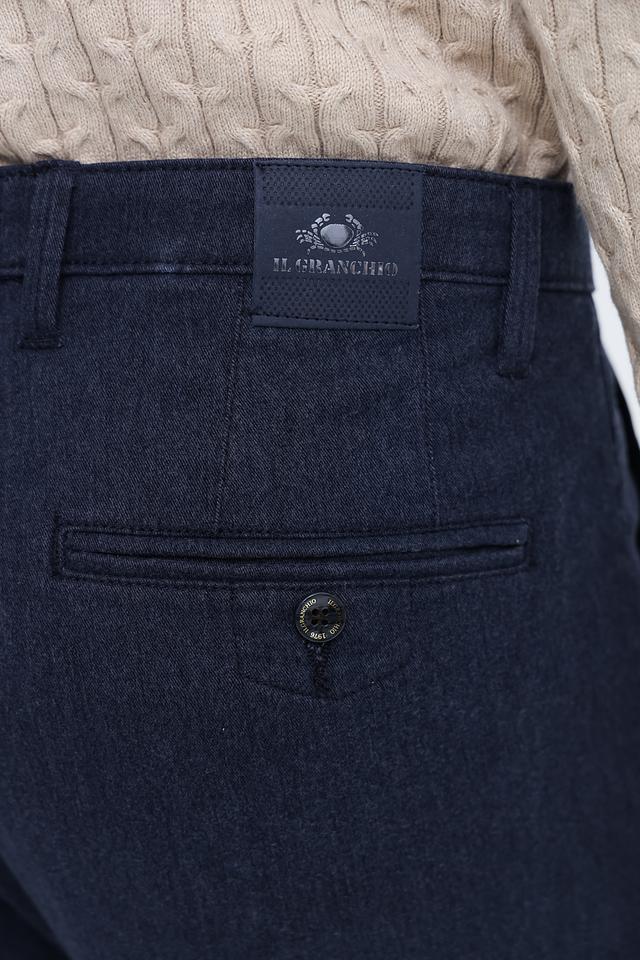 Цвет брюк – насыщенный темно-синий, который легко сочетается с различными элементами гардероба. Застежка на пуговицу и молнию, а также наличие задних карманов на пуговицах добавляют брюкам функциональности и стиля. Брюки Granchio – это отличный выбор для тех, кто ценит качество, комфорт и элегантность.