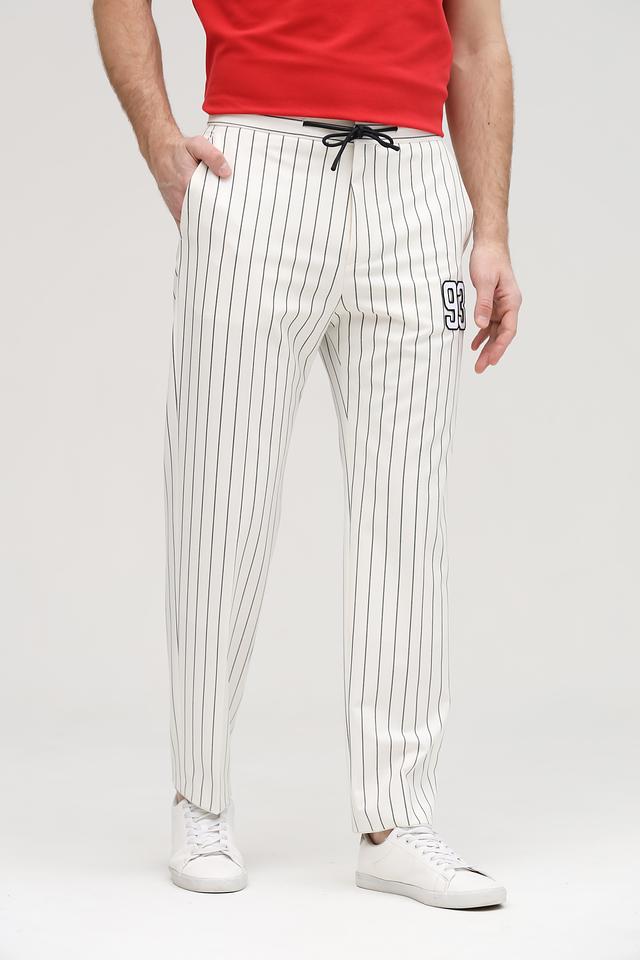Спортивные брюки Hugo белого цвета с вертикальными полосками и номером 93 — стильное и комфортное решение для активного образа жизни. Модель выполнена из сочетания полиэстера, вискозы и эластана, обеспечивающего удобную посадку и свободу движений. Состав: полиэстер 67%, вискоза 29%, эластан 4%