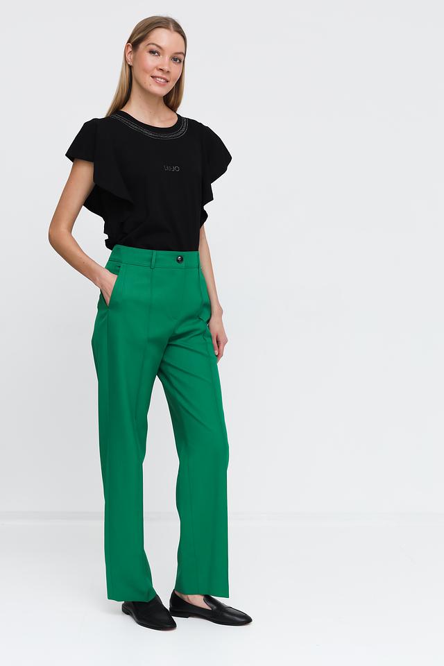 Состав ткани: 54% полиэстер, 44% шерсть, 2% эластан. Это сочетание обеспечивает приятные тактильные ощущения, хорошую посадку и устойчивость к сминанию. Брюки идеально подойдут для создания как деловых, так и повседневных образов.