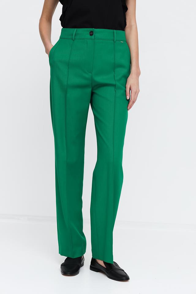 Зелёные брюки от Joop! — элегантная модель прямого кроя с высокой посадкой. Классический дизайн и качественные материалы делают эти брюки универсальным дополнением к вашему гардеробу. Состав: полиэстер 54%, шерсть 44%, эластан 2%