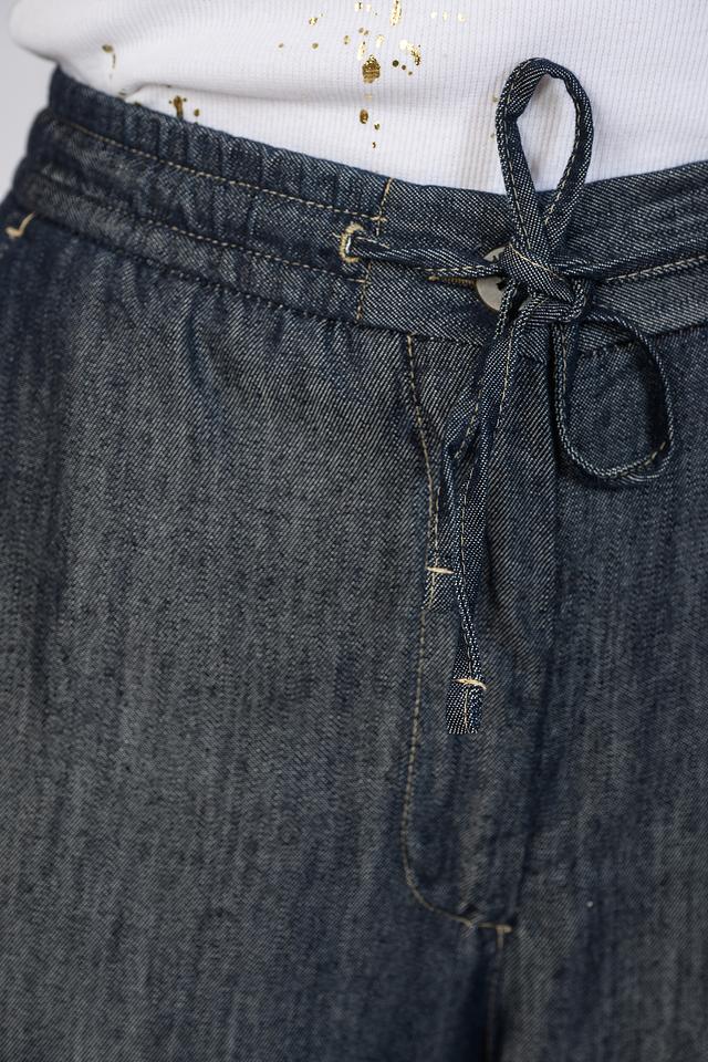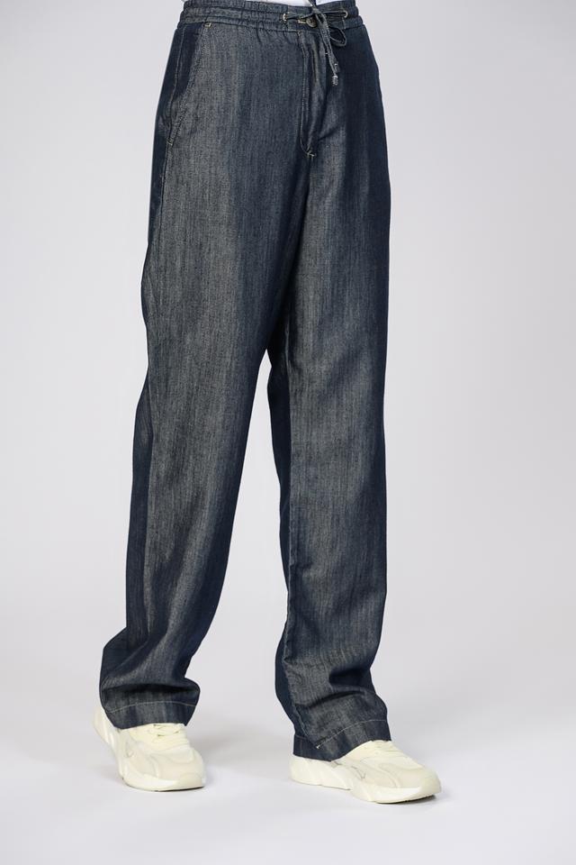 Брюки имеют свободный крой, который обеспечивает свободу движений и создает непринужденный образ. Эластичный пояс со шнурком позволяет регулировать посадку по фигуре, а боковые карманы добавляют функциональности.