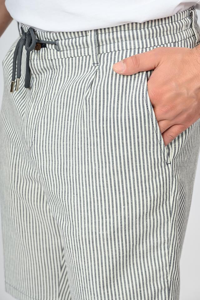 Мужские шорты от Joop! синего цвета в классическую полоску – идеальный выбор для создания стильного и комфортного образа. Модель выполнена из смесовой ткани с добавлением хлопка и льна, что обеспечивает воздухопроницаемость и приятные тактильные ощущения. Состав: хлопок 47%, лен 26%, полиэстер 17%, вискоза 9%, эластан 1%