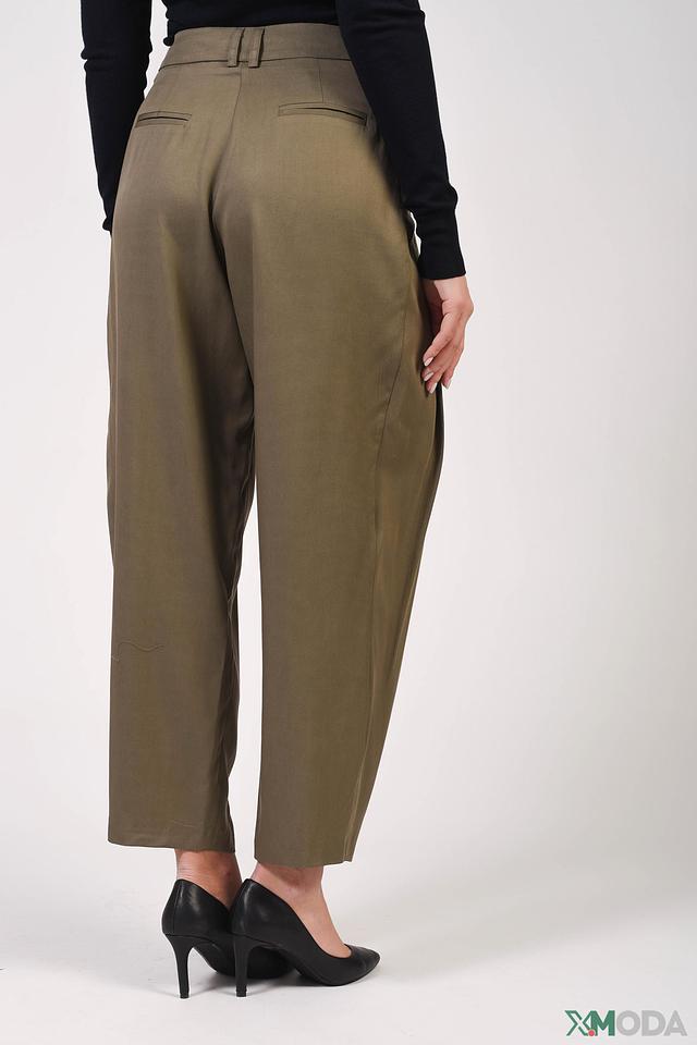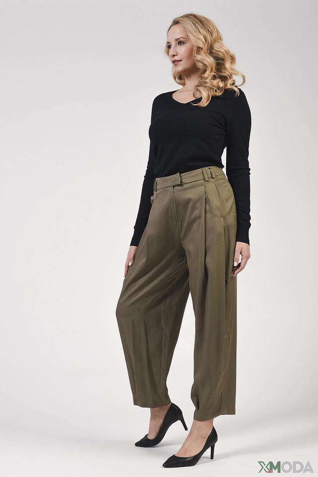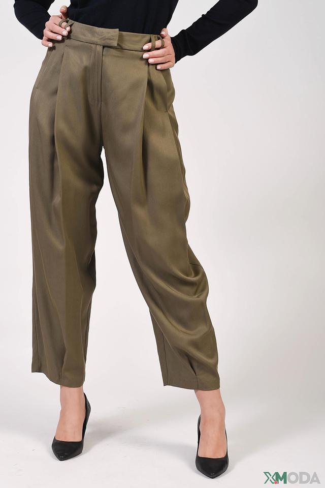 Брюки Kaos оливкового цвета — стильная модель с широкими штанинами и защипами для создания элегантного образа. Изготовлены из мягкого и приятного к телу тенселя, обеспечивающего комфорт в течение дня. Состав: тенцель 100%