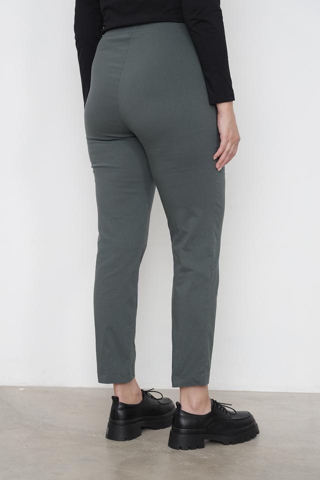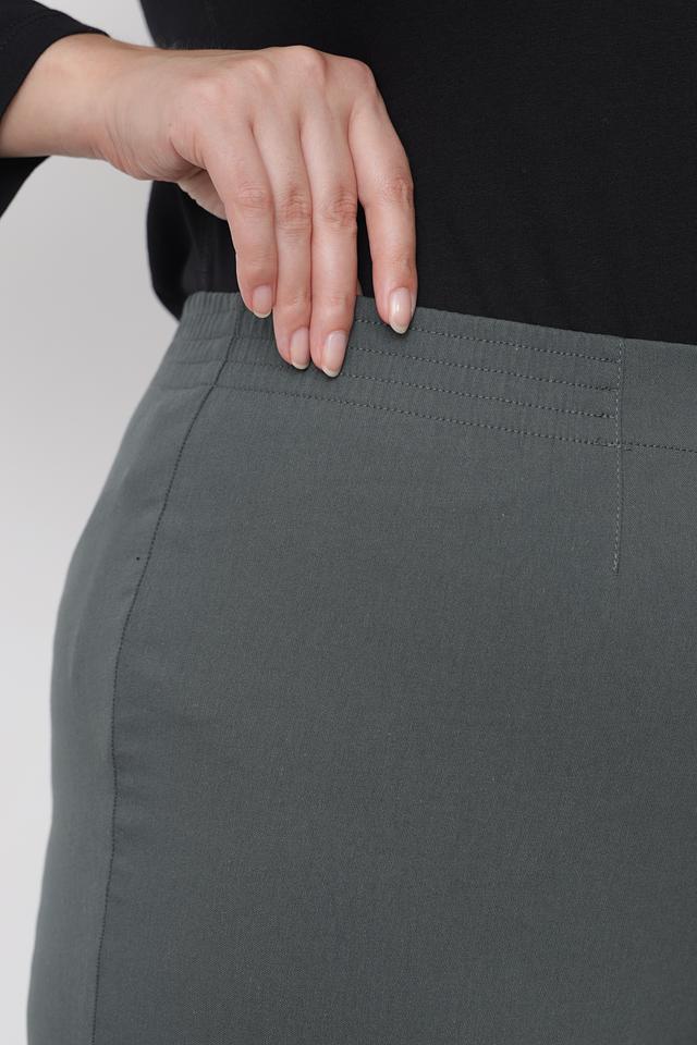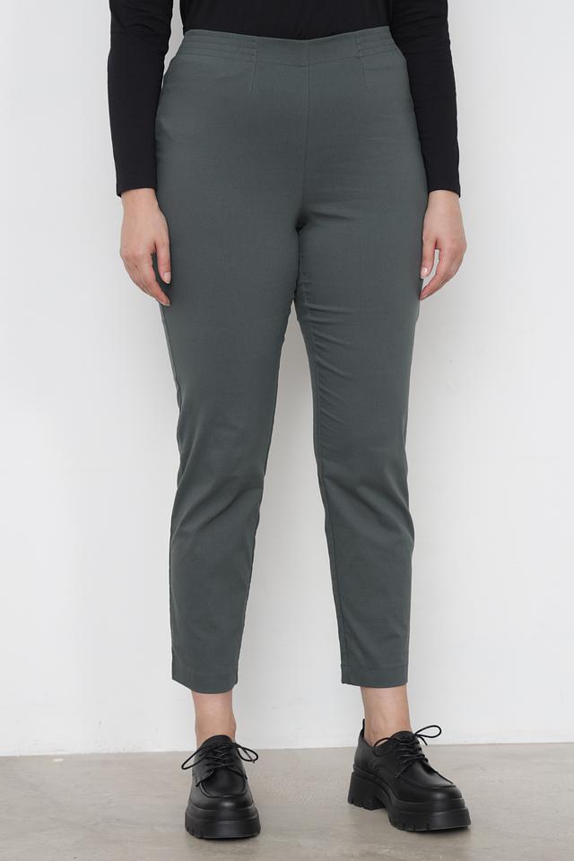 Брюки имеют прямой крой и классическую посадку по талии. Эластичный пояс обеспечивает комфортную посадку и свободу движений. Ткань состоит из вискозы, полиамида и эластана, что делает брюки приятными на ощупь и устойчивыми к сминанию.