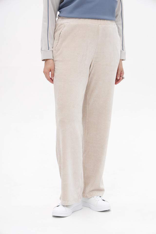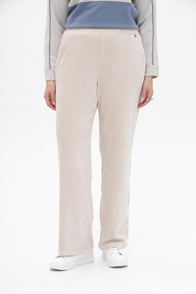 Брюки имеют прямой крой, который подходит для любой фигуры. Эластичный пояс обеспечивает удобную посадку и не сковывает движения. Классический бежевый цвет легко сочетается с различными элементами одежды, позволяя создавать разнообразные образы.