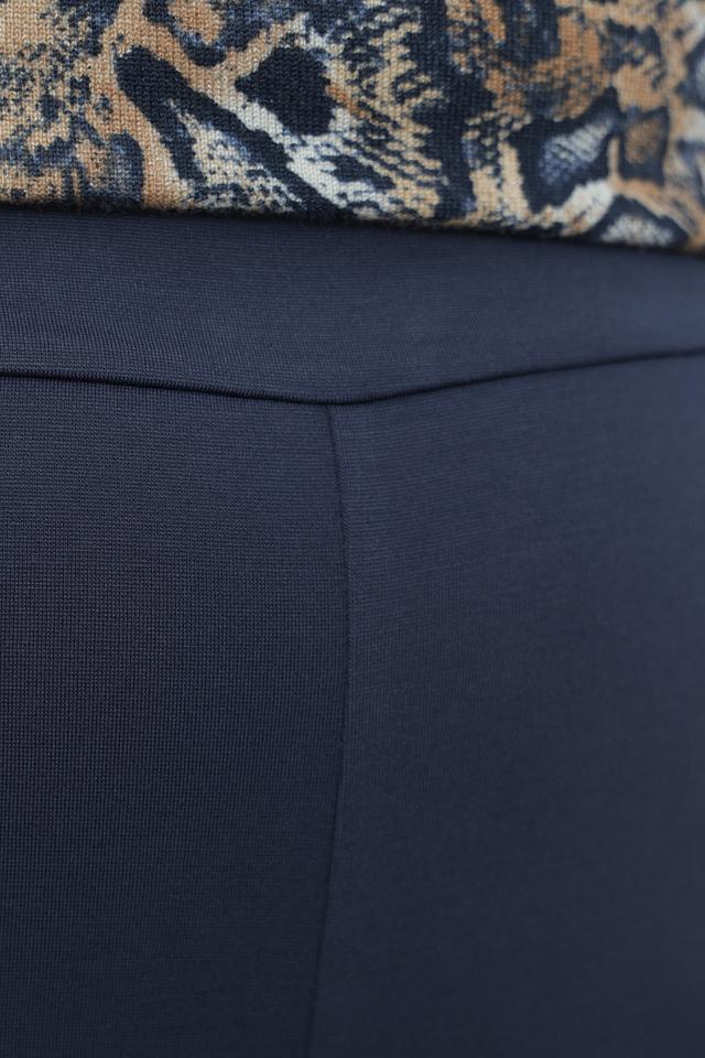 Брюки имеют прямой крой и длину 7/8, что делает их идеальным выбором для создания как деловых, так и повседневных образов. Высокая посадка подчеркивает талию и визуально удлиняет ноги. Удобный эластичный пояс обеспечивает комфортную посадку.