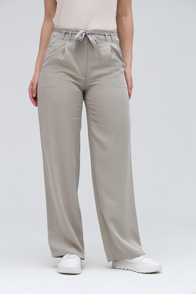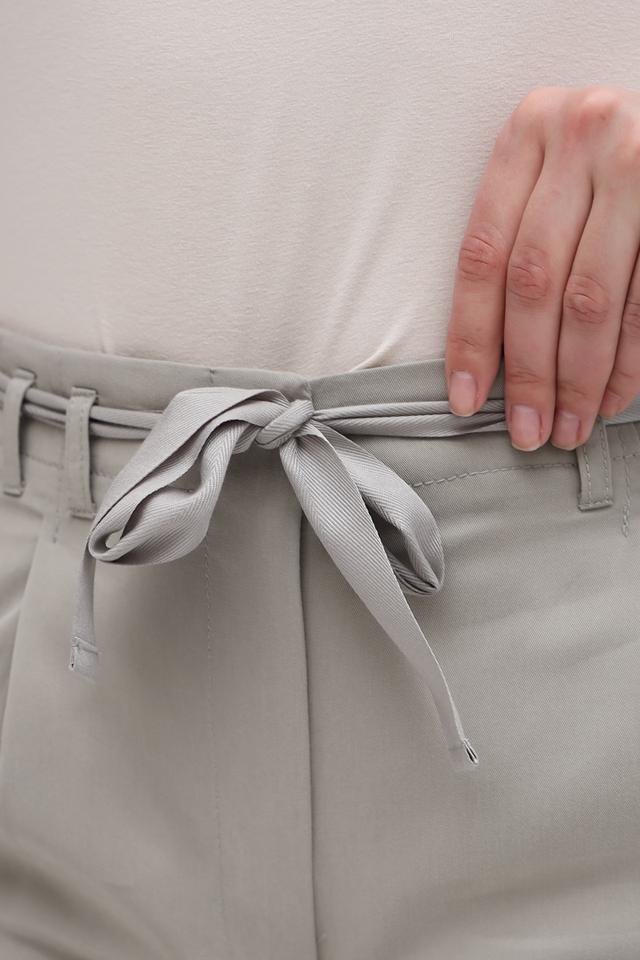 Брюки имеют завышенную талию и пояс с завязками, которые подчеркивают фигуру и позволяют регулировать посадку. Прямой крой и широкие штанины обеспечивают свободу движений и комфорт. Модель дополнена функциональными карманами.