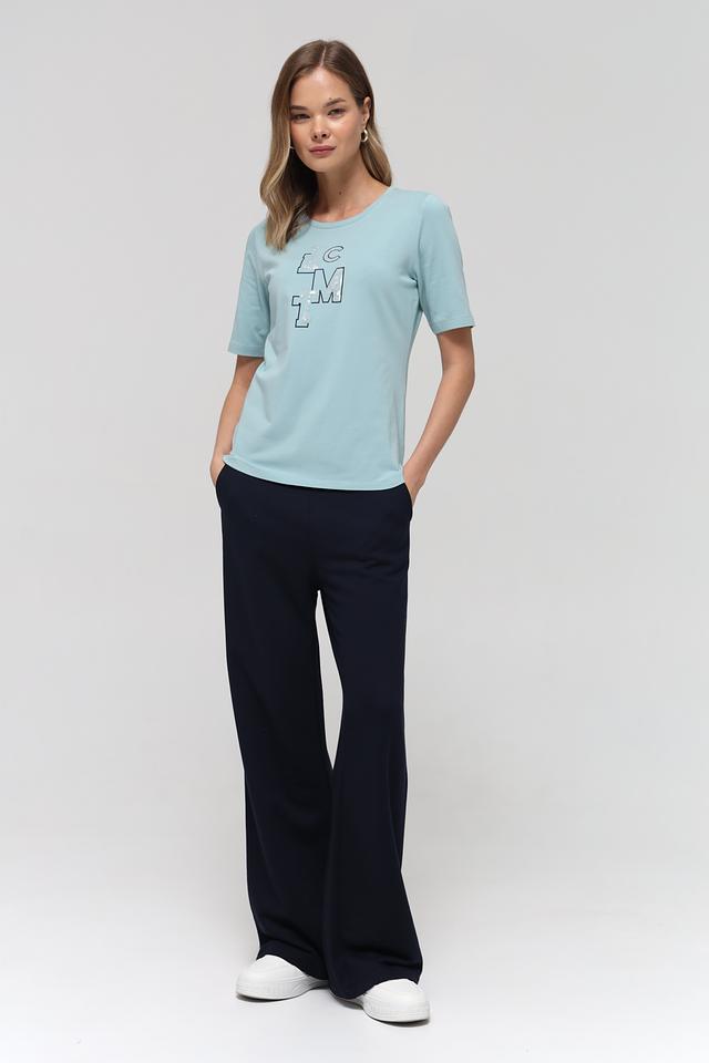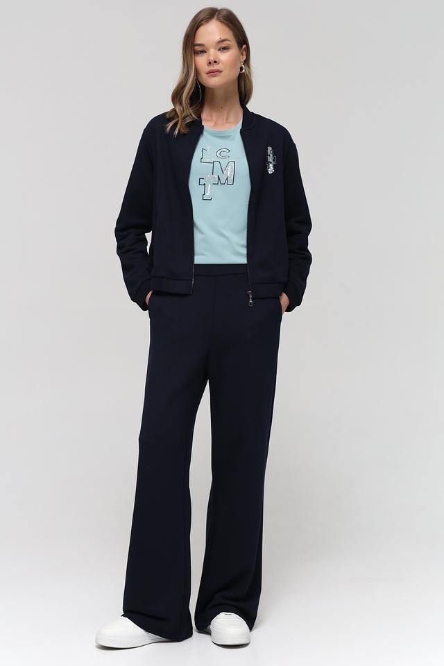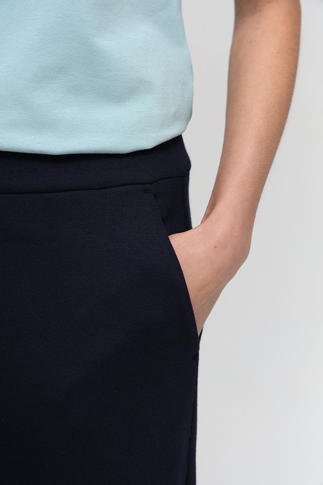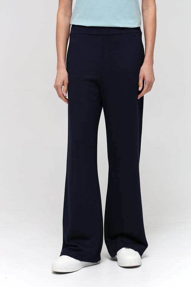 Женские брюки Lecomte тёмно-синего цвета, выполнены в стиле палаццо с высокой посадкой и широкими штанинами. Модель дополнена боковыми карманами и эластичным поясом для комфортной посадки. Состав: модал 80%, хлопок 20%