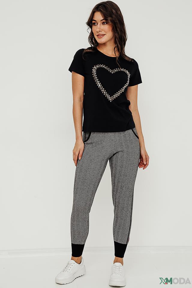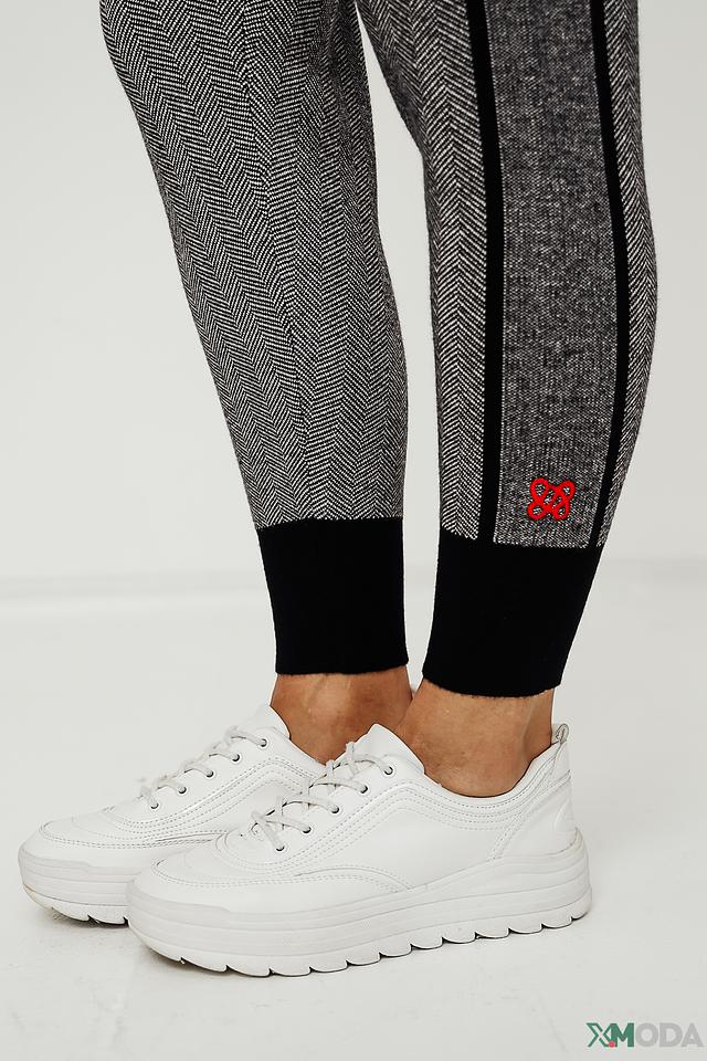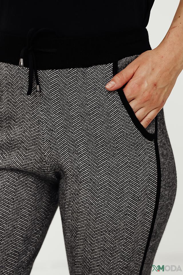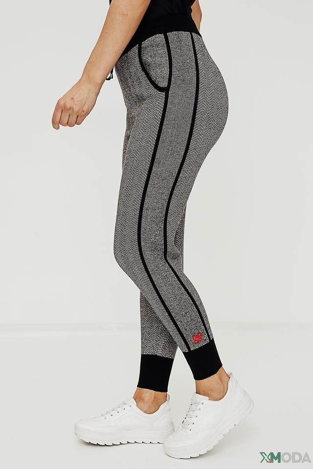 Модель имеет удобный крой с эластичным поясом и манжетами внизу. Боковые полосы контрастного черного цвета подчеркивают динамичный дизайн брюк. Состав ткани включает вискозу, целлюлозу и нейлон, что обеспечивает мягкость, приятные тактильные ощущения и хорошую износостойкость.