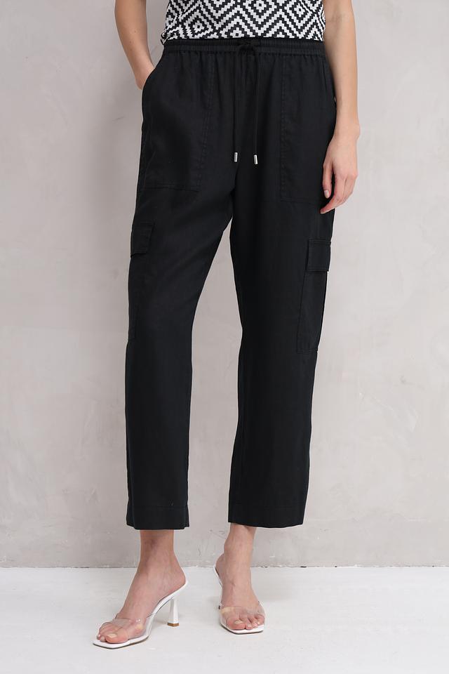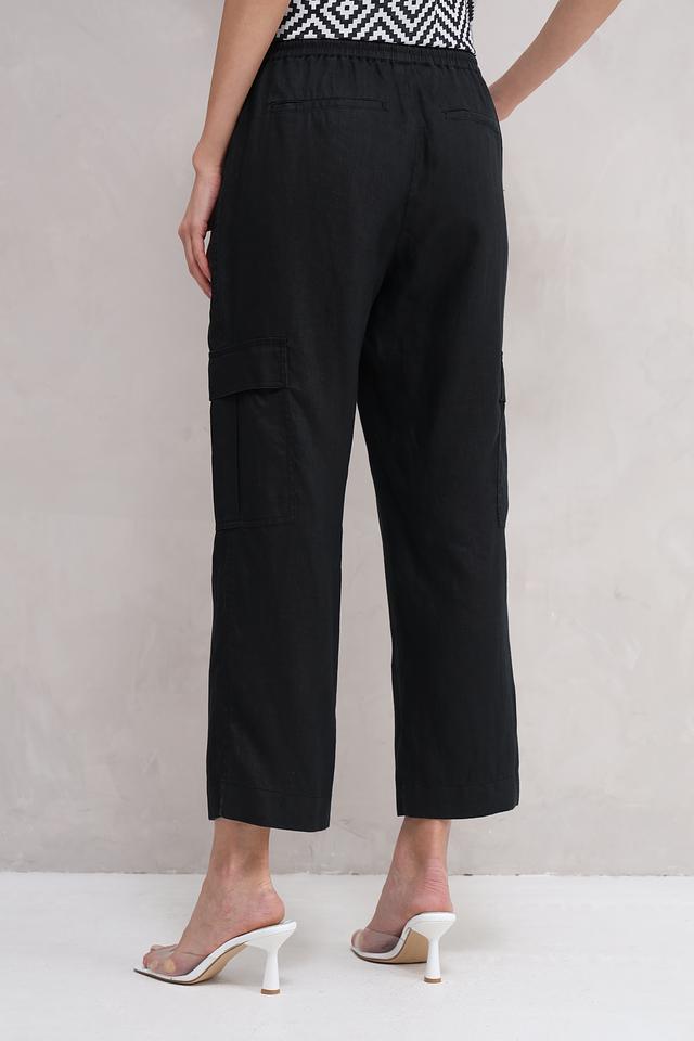 Классический чёрный цвет делает эти брюки универсальными и легко сочетаемыми с различными элементами одежды. Эластичный пояс с кулиской обеспечивает идеальную посадку по фигуре, а боковые карманы добавляют практичности.