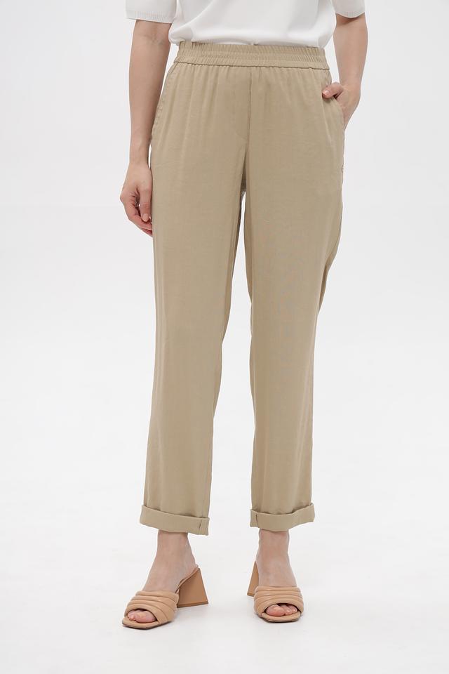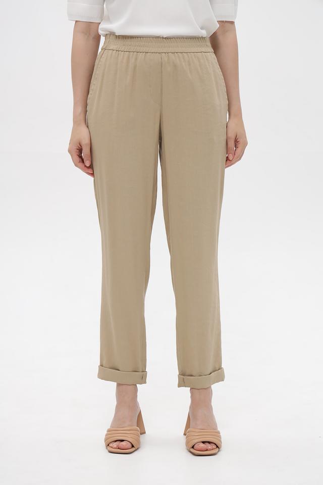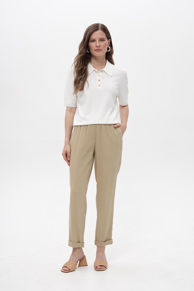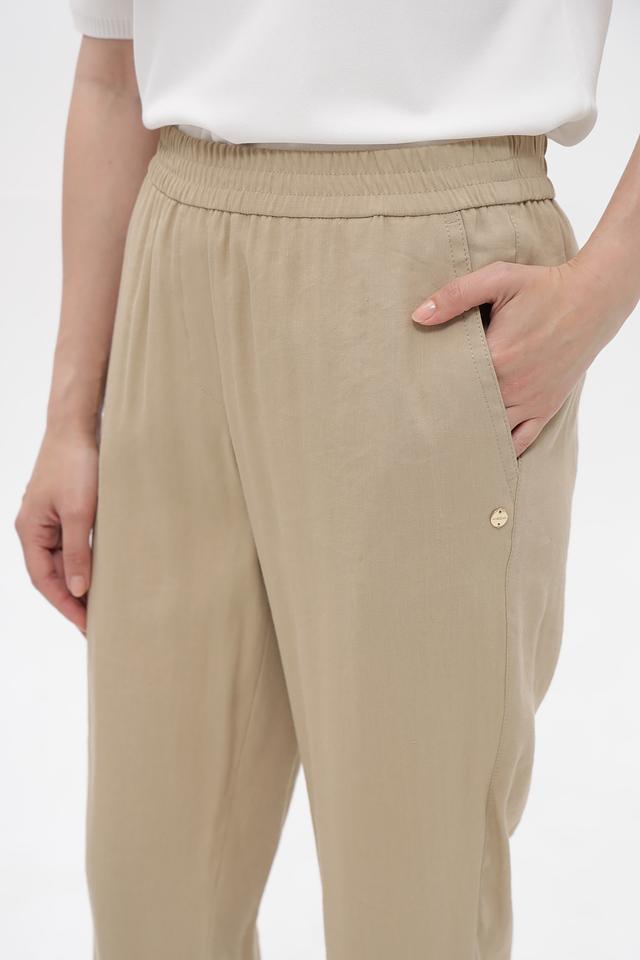 Бежевые брюки от Marc Cain из смесового льна с вискозой и эластаном. Удобная посадка на эластичном поясе, зауженный крой и подвернутые штанины создают современный образ. Состав: лен 62%, вискоза 35%, эластан 3%. Состав: лен 62%, вискоза 35%, эластан 3%