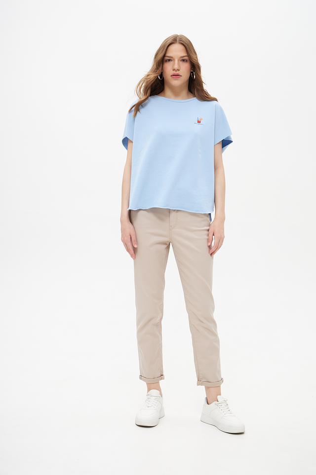 Классический дизайн модели дополнен пятью карманами, включая два боковых, два задних и один маленький карман для мелочи. Застежка на пуговицу обеспечивает надежную фиксацию. Укороченный крой делает брюки актуальными и позволяет сочетать их с разнообразной обувью.