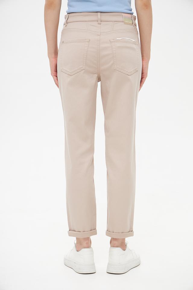 Бежевые прямые брюки от Marc Cain из хлопка с добавлением эластана. Модель с застежкой на пуговицу и пятью карманами, обеспечивающими функциональность и удобство. Состав: хлопок 97%, эластан 3%