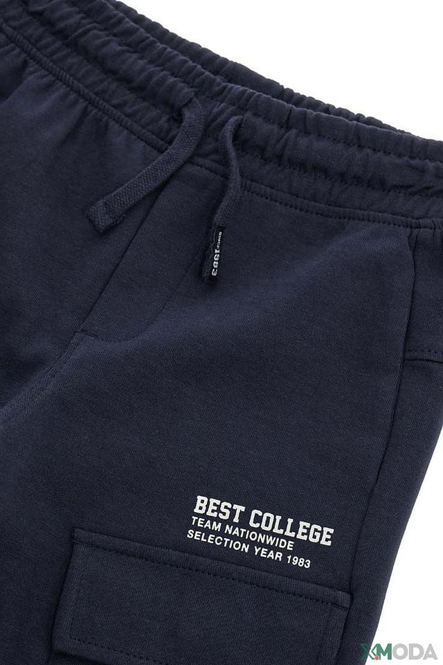 Брюки изготовлены из высококачественного хлопка (86%) с добавлением полиэстера (14%), что обеспечивает комфорт при носке, мягкость и долговечность. Эластичный пояс с регулирующим шнурком гарантирует идеальную посадку по фигуре. На брюках предусмотрен функциональный накладной карман с логотипом "BEST COLLEGE", который добавляет стильный акцент.