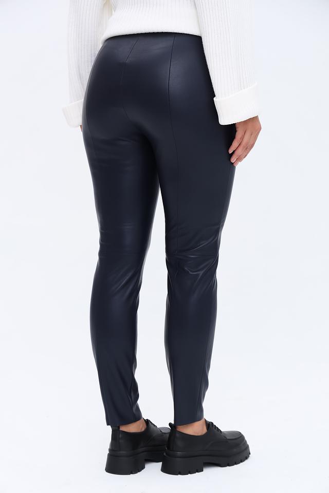 Стильные брюки от Oui тёмно-синего цвета, выполнены из экокожи с эластичными вставками. Модель облегает фигуру, создавая эффектный силуэт и обеспечивая комфорт при носке. Состав: полиуретан 100%, полиэстер 95%, эластан 5%