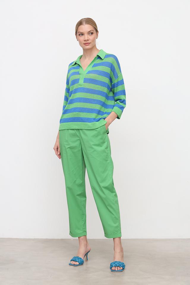 Яркий лаймовый цвет брюк делает их акцентным элементом гардероба, который легко сочетается с различными топами и обувью. Они подойдут для создания как повседневных, так и более нарядных образов. Состав: хлопок 95%, эластан 5%.