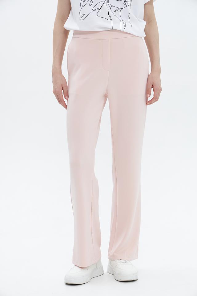 Женские брюки от Oui нежного пудрового цвета, выполнены из мягкой вискозы с добавлением полиэстера и эластана. Модель прямого кроя с эластичным поясом и декоративной вытачкой. Состав: вискоза 55%, полиэстер 41%, эластан 4%