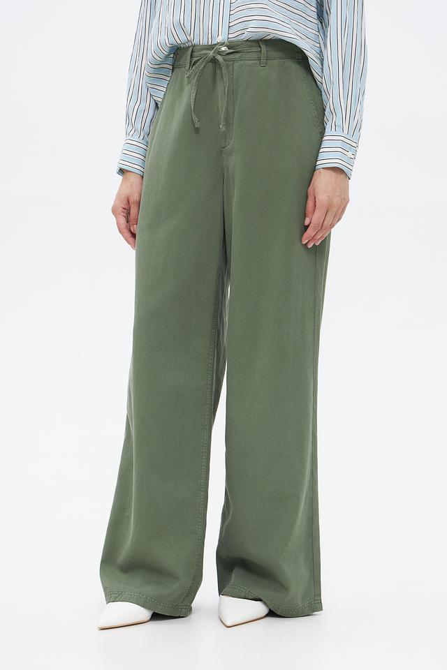 Женские брюки клёш от Oui цвета хаки — это стильное и комфортное решение для повседневного гардероба. Модель выполнена из мягкой ткани на основе хлопка и лиоцелла, имеет удобный пояс на кулиске и функциональные карманы. Состав: хлопок 51%, лиоцел 49%