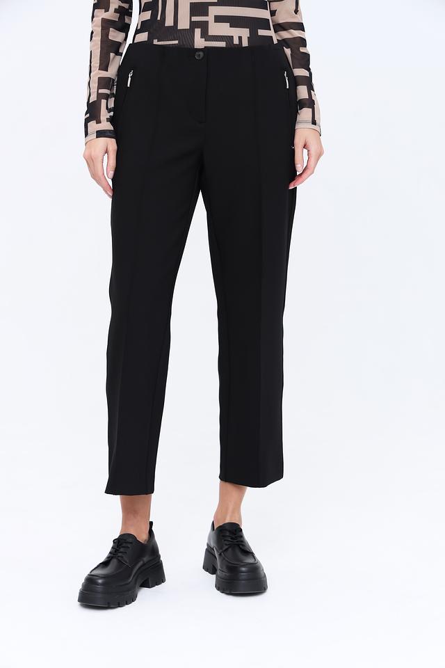 Благодаря своему лаконичному дизайну и универсальному черному цвету, эти брюки легко сочетаются с различными элементами одежды, позволяя создавать разнообразные образы — от деловых до повседневных. Состав ткани обеспечивает хорошую износостойкость и простоту в уходе.