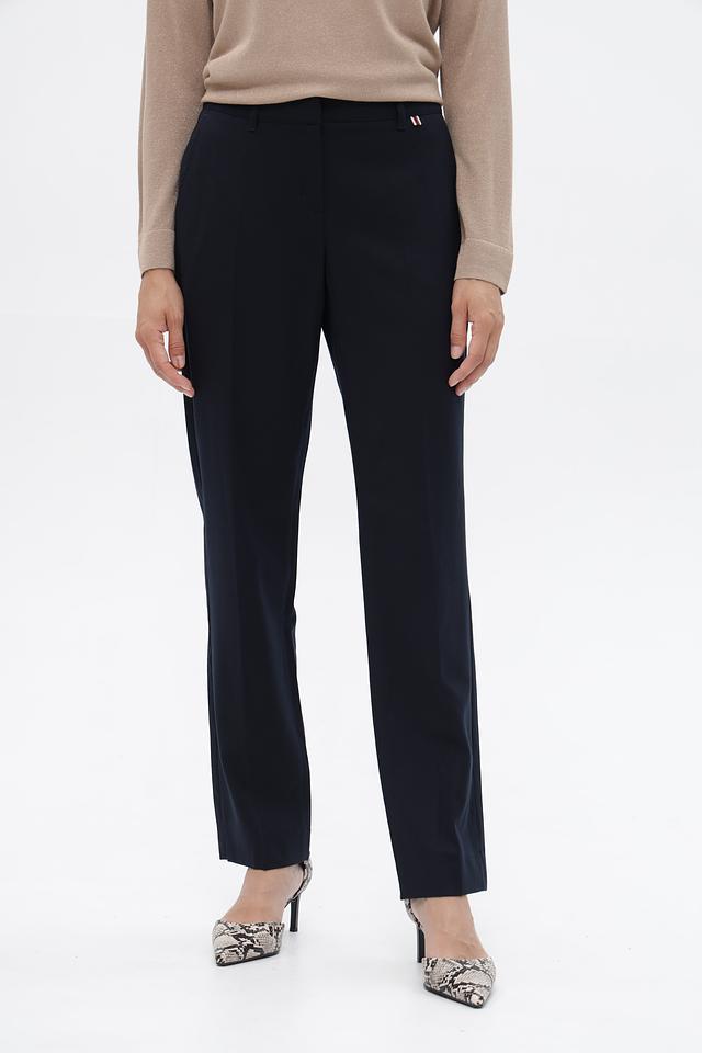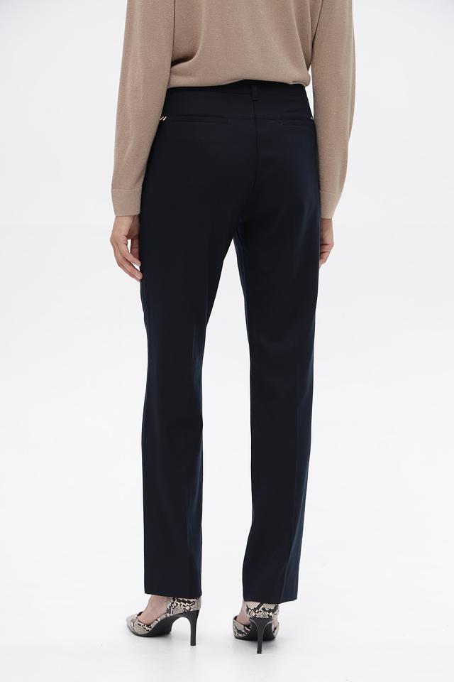 Классические брюки от бренда Ppep станут универсальным дополнением к вашему гардеробу. Модель выполнена в темно-синем цвете и изготовлена из высококачественной шерсти с добавлением эластана, обеспечивающего комфорт и свободу движений.