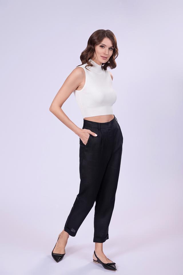 Представляем стильные брюки от бренда Shade, выполненные из высококачественного льна. Эта модель имеет классический чёрный цвет, который легко сочетается с различными элементами гардероба.