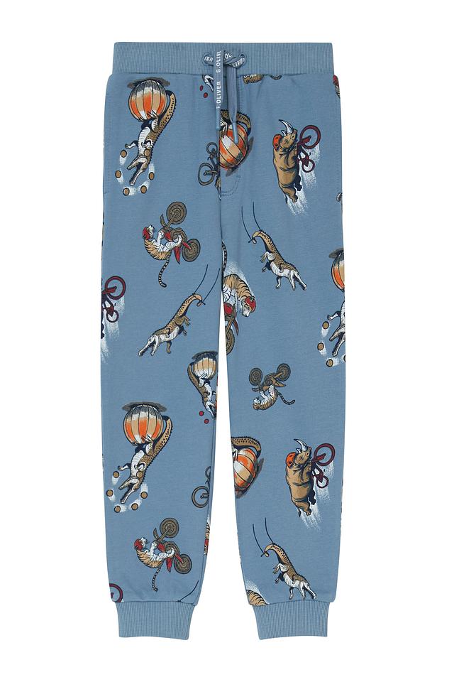 Детские брюки s.Oliver голубого цвета с ярким принтом. Изготовлены из мягкого хлопка с добавлением полиэстера для комфорта и долговечности. Состав: хлопок 90%, полиэстер 10%