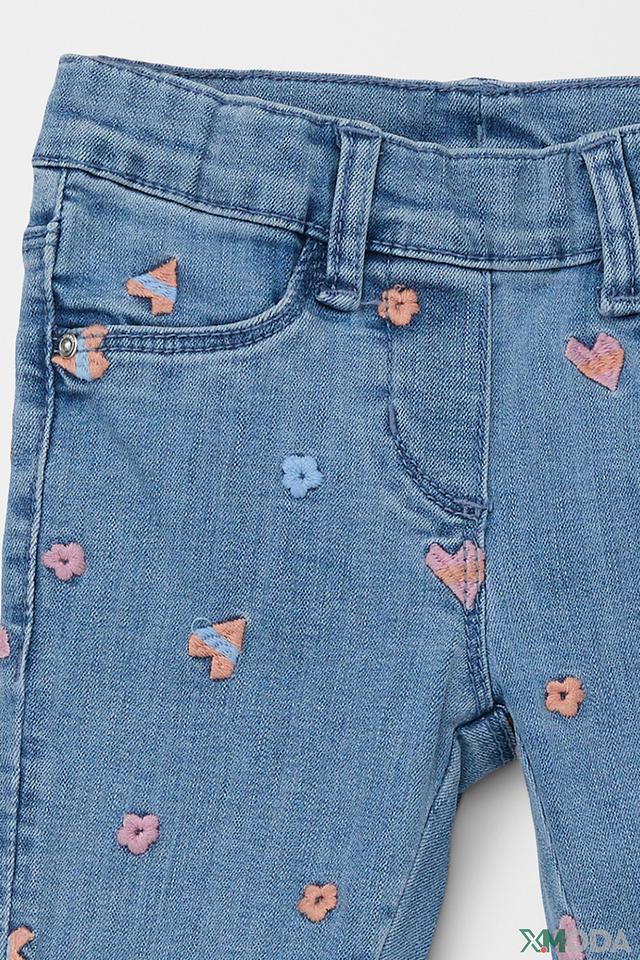 Голубые джинсы s.Oliver для девочки с очаровательной вышивкой в виде цветочков и бабочек. Удобный крой и эластичный пояс обеспечивают комфорт и свободу движений. Состав: хлопок 80%, полиэстер 19%, эластан 1%