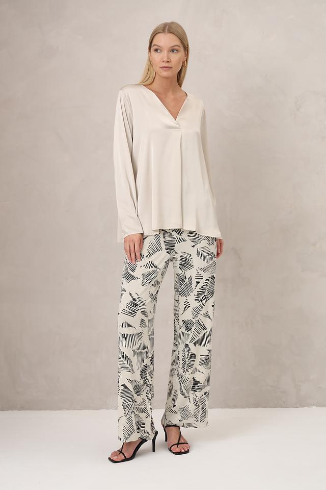 Женские брюки Sportalm бежевого цвета с оригинальным чёрно-белым принтом станут стильным дополнением к вашему гардеробу. Модель выполнена из мягкой вискозы с добавлением эластана, обеспечивающего комфорт при носке. Состав: вискоза 95%, эластан 5%